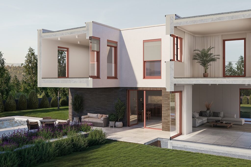 De profielen kunnen met alle vleugelprofielen worden gecombineerd en zorgen zowel bij enkelvoudige elementen als dubbele stolpramen voor een uniform, modern aanzicht. In combinatie met verborgen beslag ontstaat ook aan de binnenzijde een bijzonder strakke look. Tegelijkertijd blijft de verwerking voor de verwerker vertrouwd: de werkwijze en accessoires komen overeen met de processen bij de standaard 70mm-kozijnen.