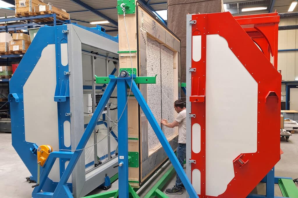 De IsolatieTestKamer – ook wel ‘hotbox’ genoemd conform de norm NEN-EN-ISO 8990 – is een geavanceerde testopstelling waarin complete bouwelementen en bouwproducten met een afmeting tot 2,0 x 2,0 meter onderzocht kunnen worden. Denk bijvoorbeeld aan een houten vloer geïsoleerd met PUR-schuim, een kozijn voorzien van een paneel of beglazing, een spouwmuur met minerale wol of geïsoleerde gwevelpanelen. Met deze testopstelling wordt onder gecontroleerde omstandigheden inzichtelijk gemaakt hoe goed een element warmte vasthoudt – en hoe energie-efficiënt het dus in werkelijkheid is. Niet als losse materialen, maar als compleet opgebouwd bouwdeel, net zoals het in een gebouw verwerkt wordt.