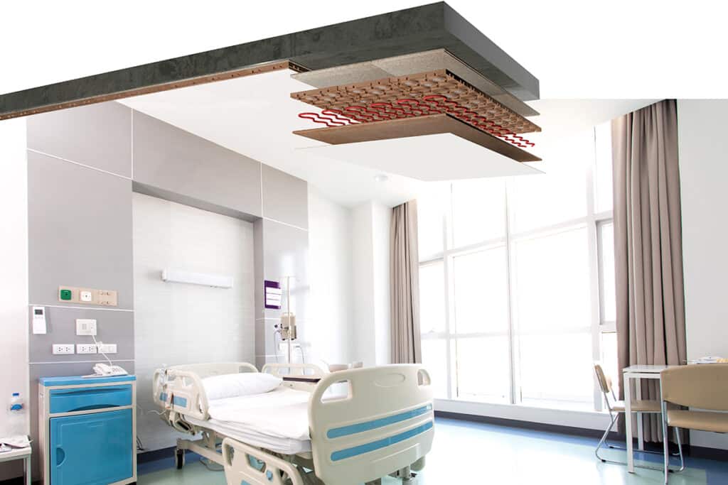 Doordat de klimaatplafonds werken op basis van stralingswarmte, is de gevoelstemperatuur 2-3 graden hoger dan de effectieve luchttemperatuur. “Bovendien heeft ons klimaatplafond op water een veel lagere voorlooptemperatuur nodig dan convectieverwarming. De toegevoegde kleimineralen houden de relatieve vochtigheid op natuurlijke wijze in balans. Zonder techniek en zonder sensoren.”
