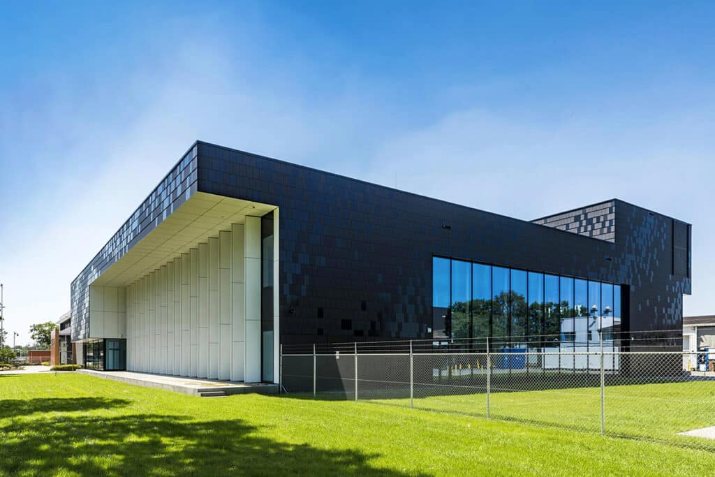De opdracht voor het ontwerp ging naar het Rotterdamse Broekbakema. Het architectenbureau vertaalde de ambitie in een gevelconcept dat visueel en technisch breekt met conventies. Geen grote vlakke panelen, maar kleine elementen die als schubben over elkaar liggen. Elk afzonderlijk gemonteerd, nauwkeurig gepositioneerd, en voorzien van één van drie verschillende afwerkingen: Diffuse, Specular of Oblique. Het resultaat is een gevel die verandert met het licht, de dag en het weer: van ingetogen tot expressief, afhankelijk van hoe het zonlicht speelt. De gevel is opgebouwd uit Trespa® Meteon® Lumen-panelen, waarbij bewust is gekozen voor drie specifieke afwerkingen: Diffuse (mat en zacht), Specular (hoogglans) en Oblique (licht geëtst met subtiele richting). Deze combinatie zorgt voor een gevel die letterlijk in beweging lijkt zodra het zonlicht erop valt.